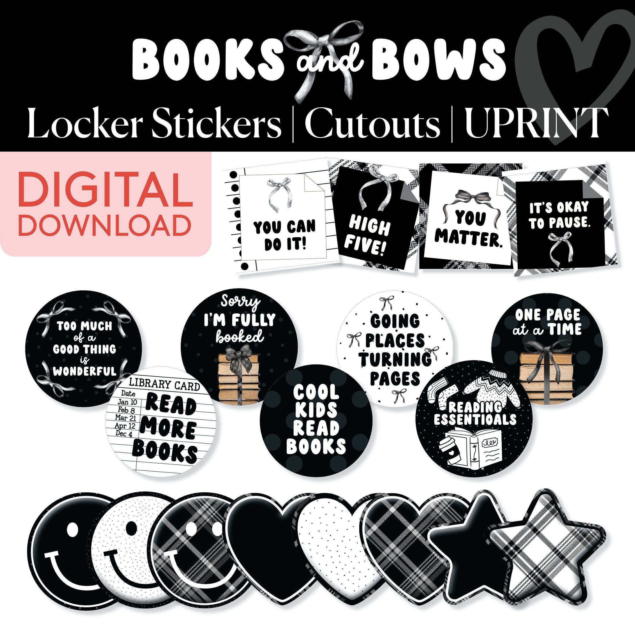 Add some fun and encouragement to your locker with the Books and Bows Locker Stickers & Cutouts! Perfect for students and teachers alike, these adorable stickers feature playful sayings, cute designs, and a pop of black-and-white charm. Whether you’re looking to brighten up a locker, give a motivational boost, or just add a little personality to your space, these stickers are ready to stick and inspire!