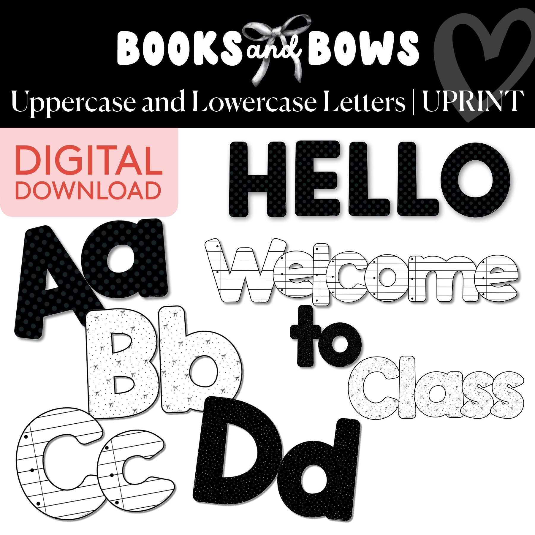 Add some fun and flair to your classroom with the Books and Bows Black and White Uppercase and Lowercase Printable Letters! These stylish letters come in bold black dots, lined notebook designs, and more classic patterns, making them perfect for creating personalized displays, spelling out messages, or even educational uses!
