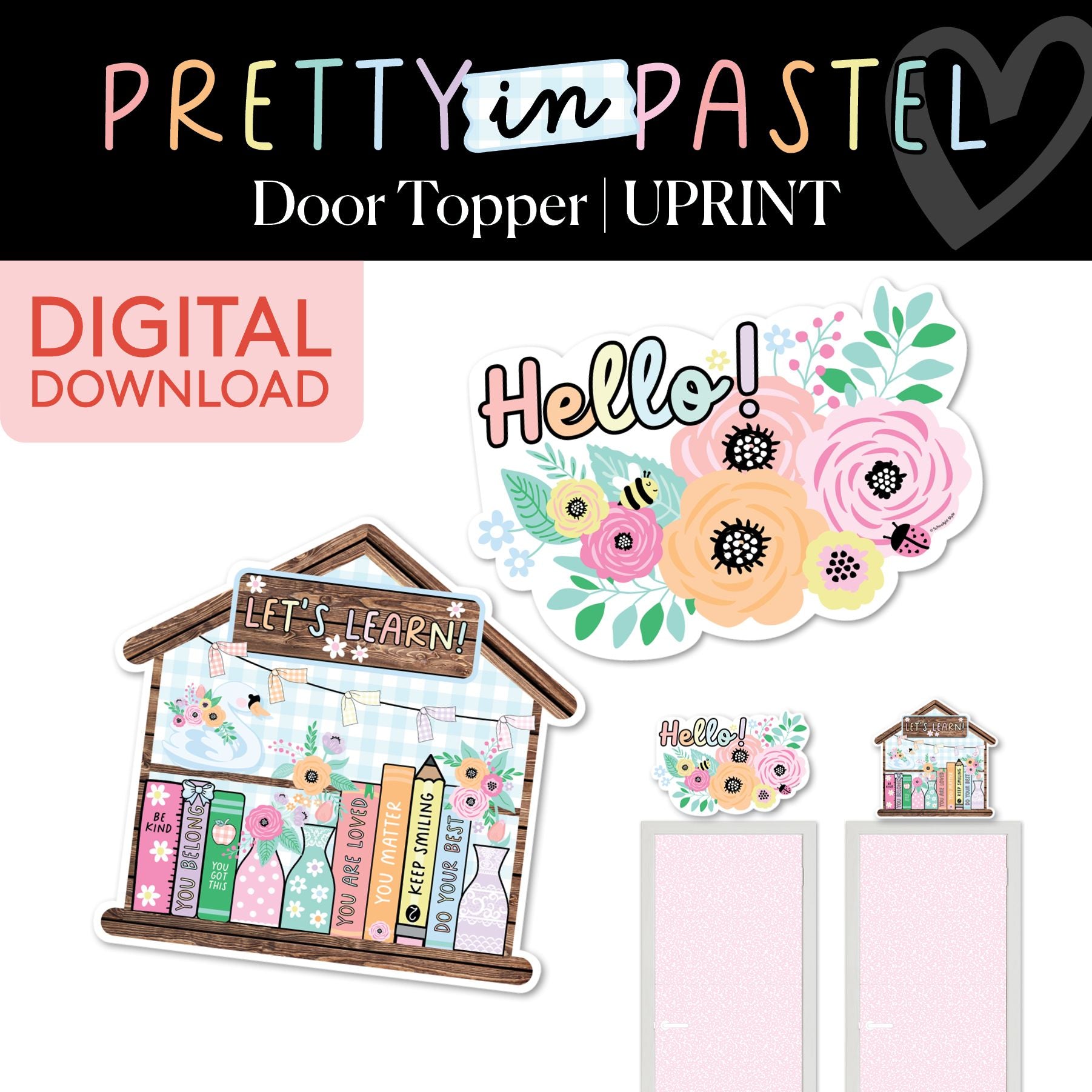 This adorable "Pretty in Pastel" Door Topper brings a warm, welcoming vibe to your classroom! Featuring a charming house with colorful books, uplifting messages, and a floral "Hello!" sign, it's the perfect way to greet students with joy and positivity. Add a touch of whimsy and make your classroom entrance feel like home!