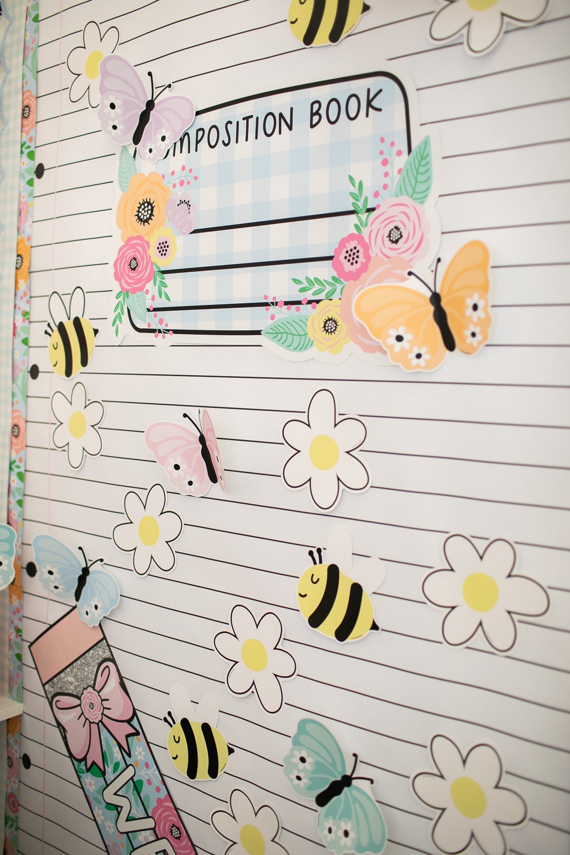 This Pastel Gingham Composition Notebook Statement Piece brings classic school charm with a pastel twist! Featuring a soft blue gingham pattern, delicate floral accents, and the classic “Composition Book” design, it adds an inviting touch to your classroom. Perfect for bulletin boards or displays, this statement piece beautifully complements the Pretty in Pastel collection, infusing your space with a touch of school-inspired elegance and cheerful vibes!