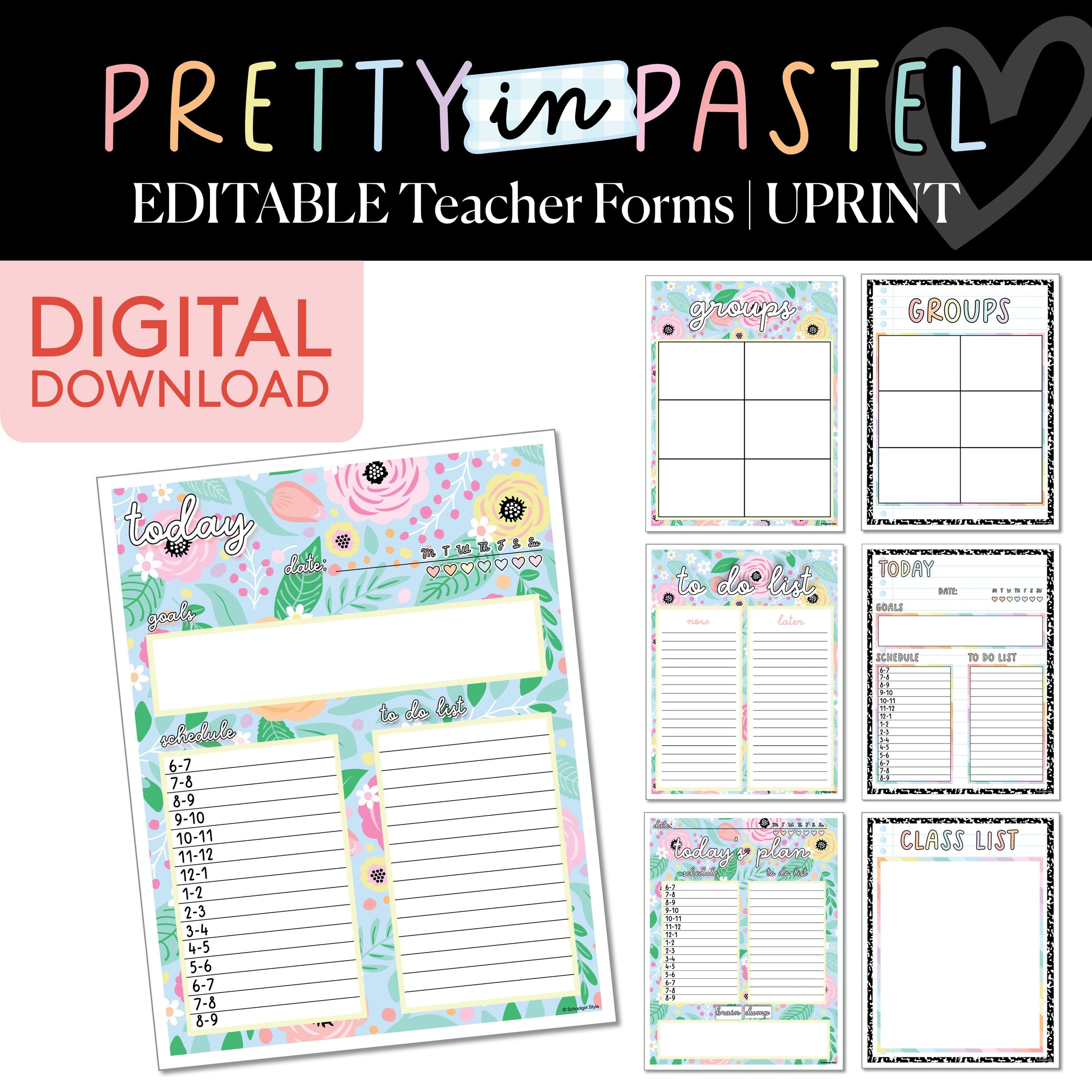 Stay organized and stylish with the Pretty in Pastel Editable Teacher Forms! From daily schedules and to-do lists to group organizing and goal setting, these forms help keep your day on track. Featuring an uplifting floral pastel design, these forms bring both functionality and charm to your teacher planning. Whether you're jotting down goals, planning your day, or organizing groups, these forms will make your classroom management easier and cuter than ever!