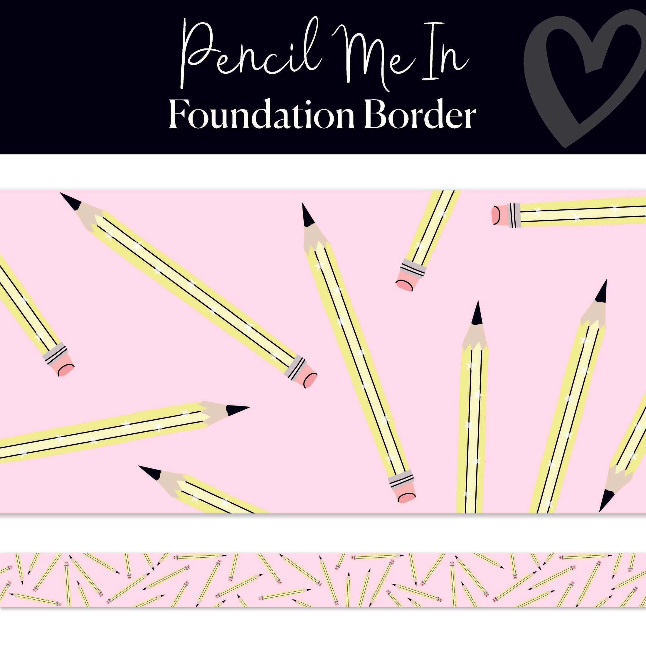 Our charming "Pencil Me In" classroom border is the perfect playful design to incorporate into your classroom! Its soft pastel pink tones paired with adorable pencil illustrations bring a cheerful and creative touch to any wall or display