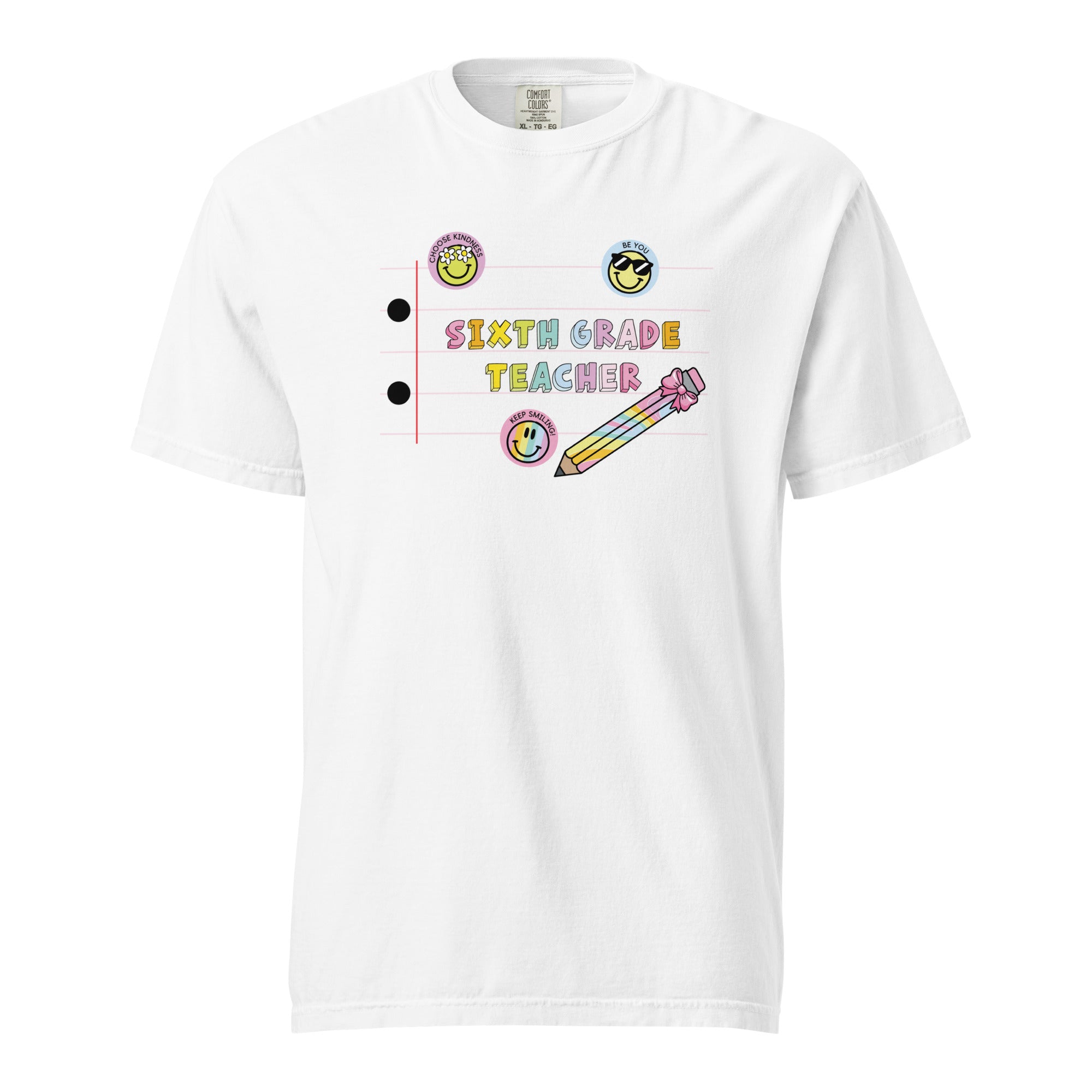 Designed for middle grade magic, this Sixth Grade Teacher shirt brings personality and positivity to the classroom. The playful pencil and smiley face details create a supportive vibe for growing minds.