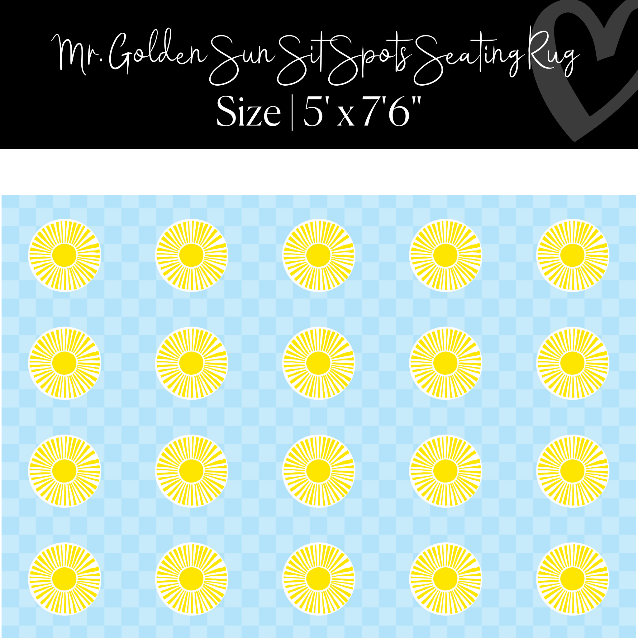 Peppy and happy suns bring on the cheer and smiles! The combination of bright yellow and sky blue usher pure joy! Students are sure to love gathering on this criss-cross applesauce rug! This rug coordinates beautifully with many of the Schoolgirl Style classroom decor themes!