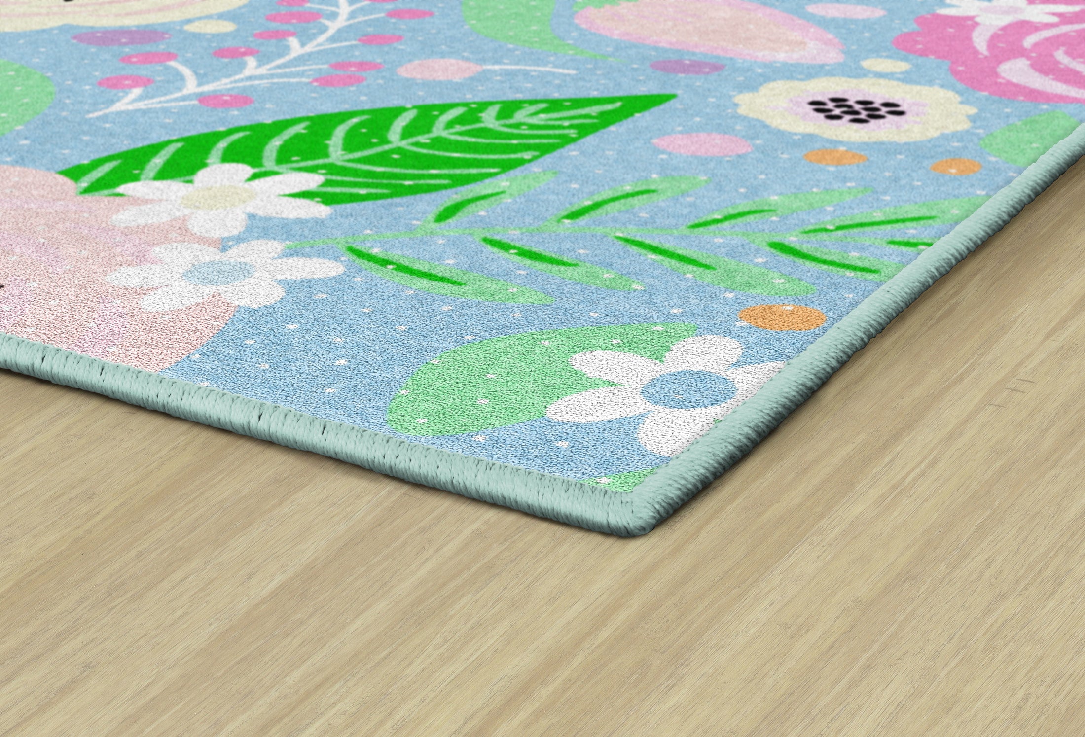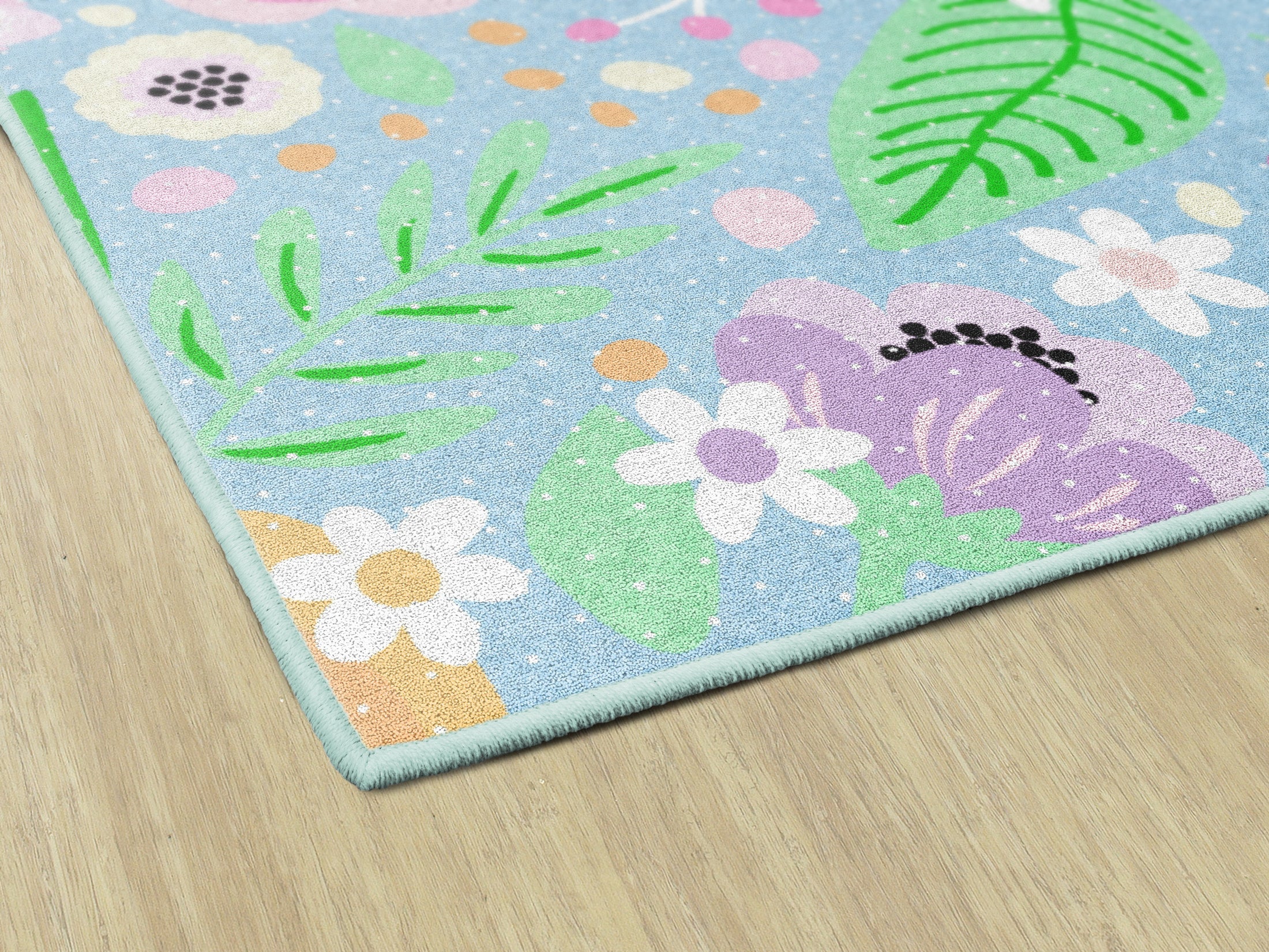 The Pretty in Pastel Floral Classroom Rug is soft, serene, and beautifully designed. Featuring hand-drawn florals in gentle tones, it brings a fresh and elegant feel to classroom environments focused on peace and connection.