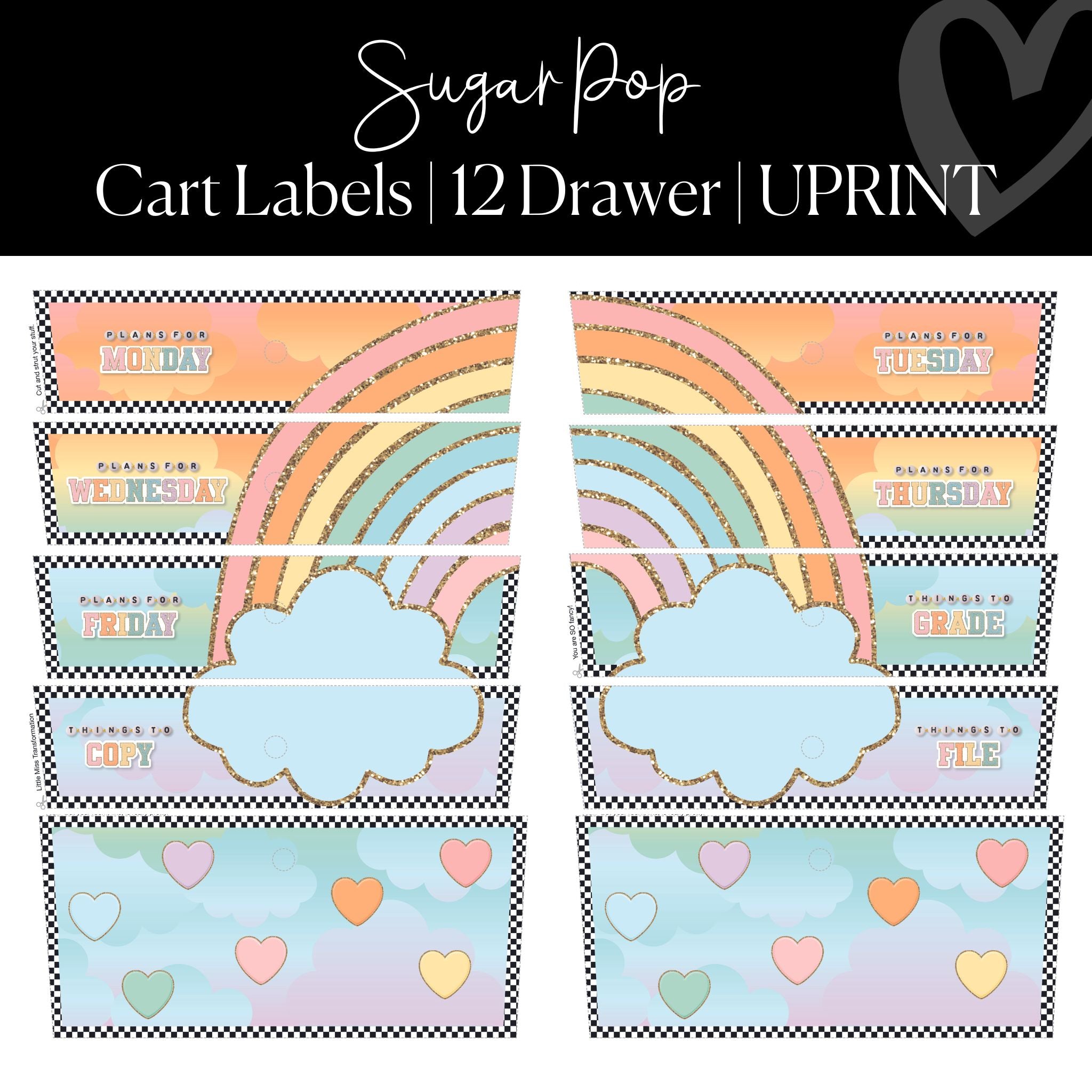 12 Drawer Rolling Cart Labels | Pastel Classroom Decor | Sugar Pop | UPRINT | Schoolgirl Style