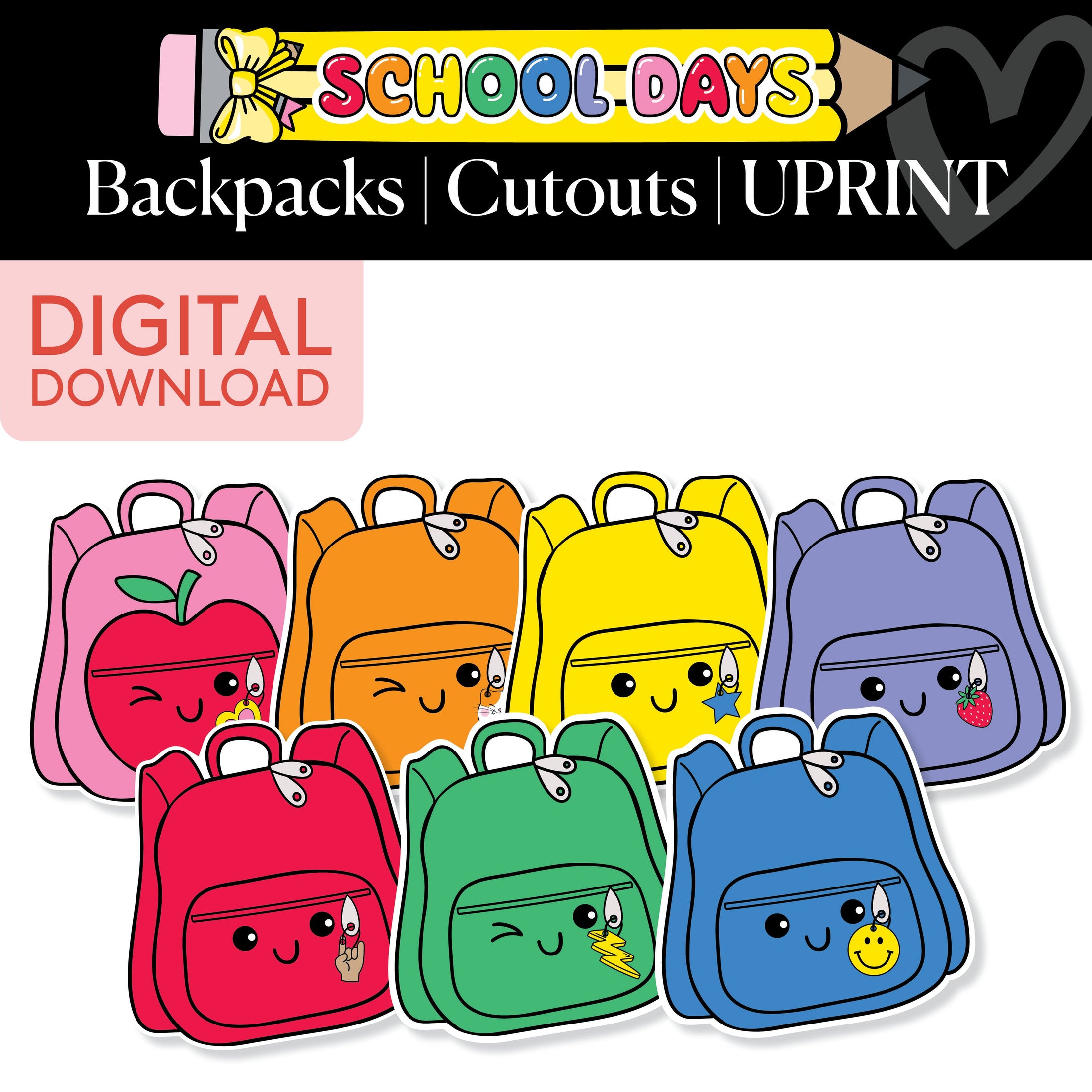 These adorable School Days Printable Backpack Cutouts are the perfect way to add a splash of color and charm to your classroom! Featuring cute backpacks in a range of bright hues—pink, orange, yellow, and more—each with its own fun, quirky charm like smiley faces, fruit charms, and playful accessories. Whether you're creating a fun bulletin board, organizing classroom areas, or celebrating achievements, these backpacks bring a cheerful vibe to any space!