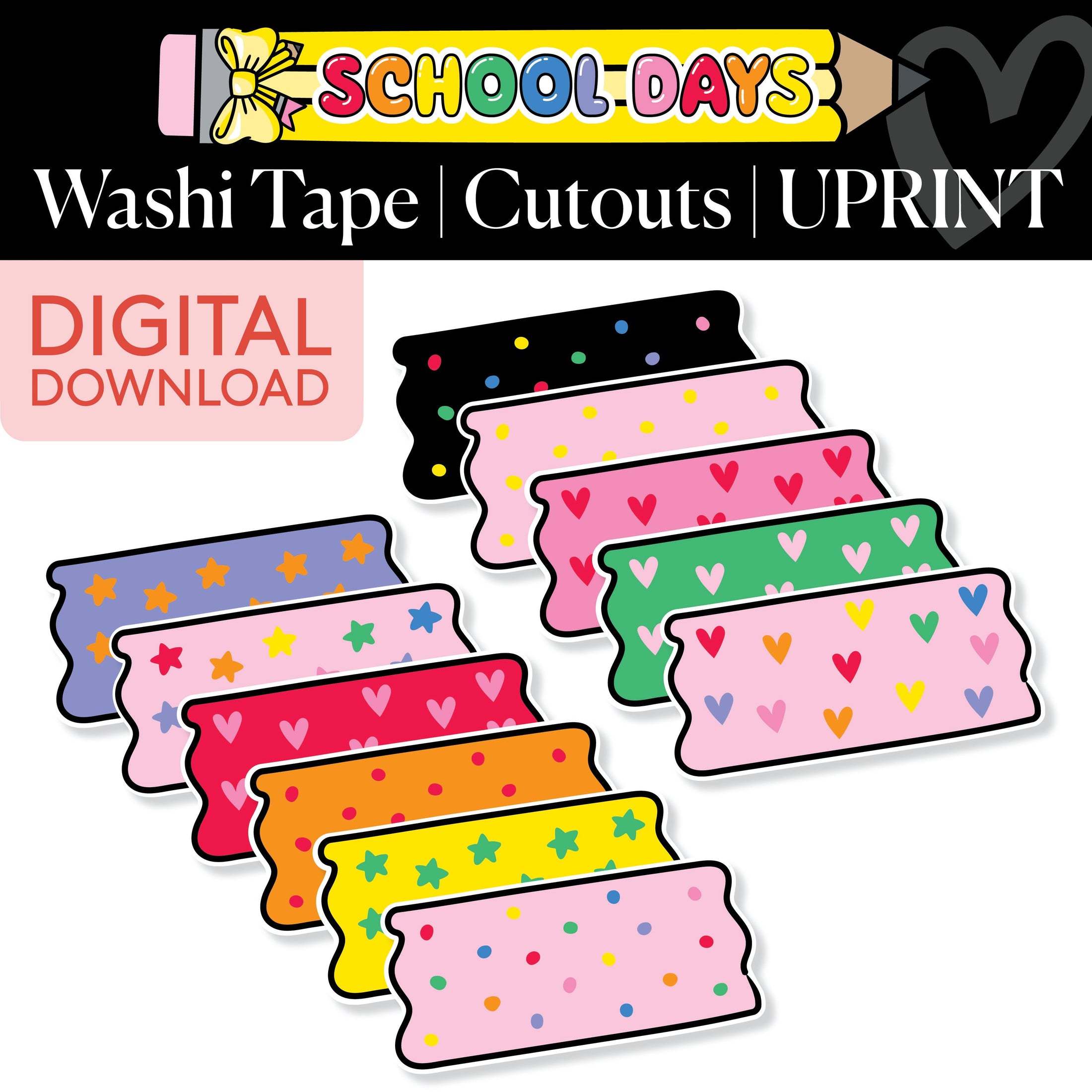 These School Days Washi Tape cutouts are a fun, colorful way to add personality and charm to any classroom! With vibrant patterns of hearts, stars, and polka dots, these playful tape designs are perfect for decorating bulletin boards, reward charts, or even student work. Whether you're adding a pop of color or creating unique patterns, these cutouts make organizing and decorating your classroom extra fun!