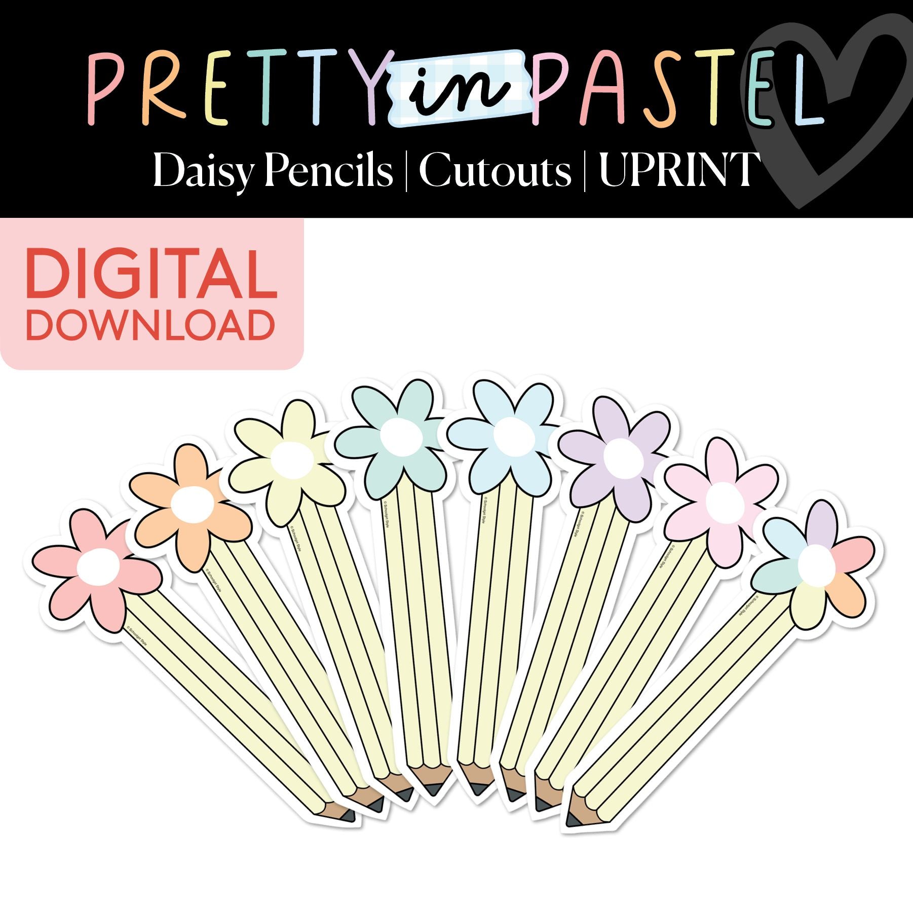 Brighten up your classroom with these adorable Daisy Pencils Cutouts from the Pretty in Pastel collection! This digital download features playful pastel-colored pencils topped with sweet daisy flowers. Perfect for adding a touch of whimsy to bulletin boards, classroom displays, or even student work. These charming cutouts bring a fun and creative vibe to any space while perfectly complementing the Pretty in Pastel collection’s soft, floral aesthetic.