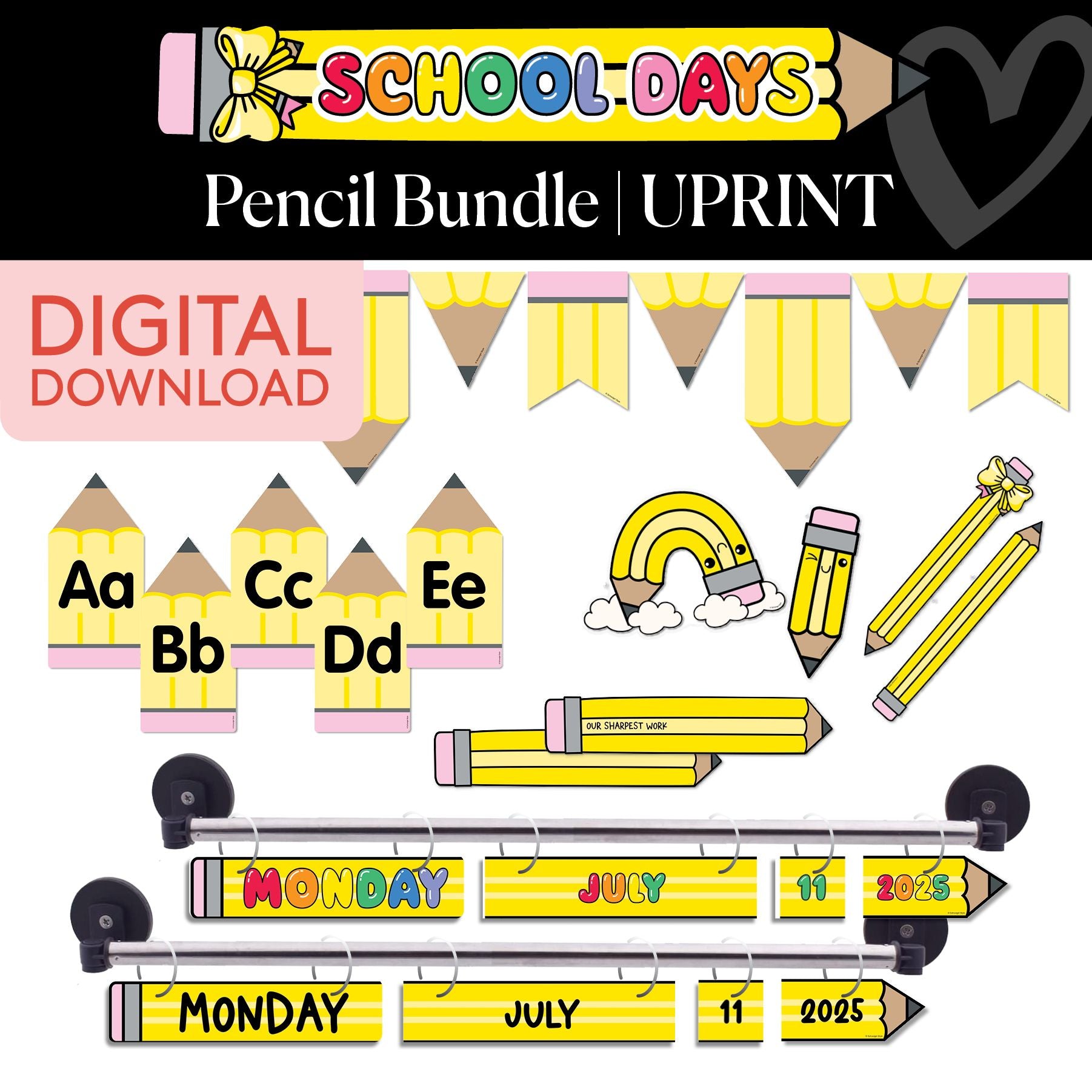 Get ready to sharpen your classroom style with the School Days Pencil Bundle! This colorful collection has everything you need to bring a pop of fun and order to your space. From adorable pencil-themed banners to playful pencil letter cards and colorful calendar hangers, this bundle makes it easy to create an organized, vibrant environment. Whether you’re looking to mark the days of the week or add some fun to your bulletin board, the School Days Pencil Bundle has you covered. Add some flair to your classroom and inspire your students with this cheerful, pencil-packed set!