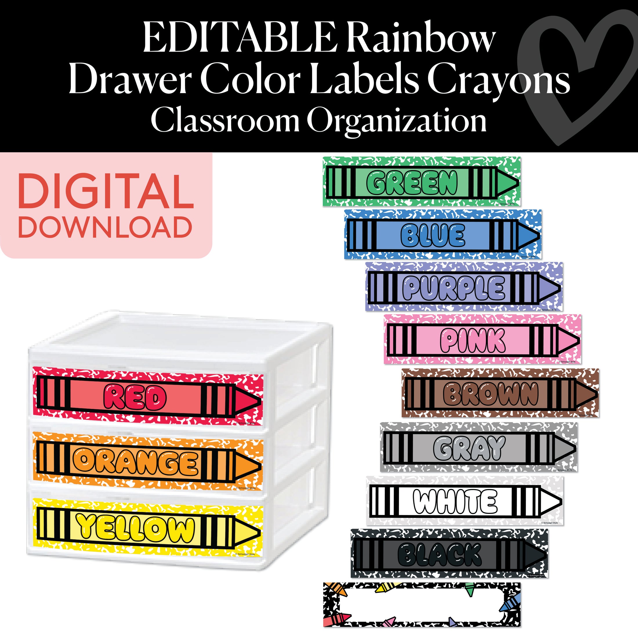 Bring bright, bold organization to your classroom with Editable Rainbow Drawer Color Labels! Designed in a fun crayon shape with vibrant composition notebook textures, these labels make it easy to sort and store materials by color—perfect for drawers, bins, shelves, and more.