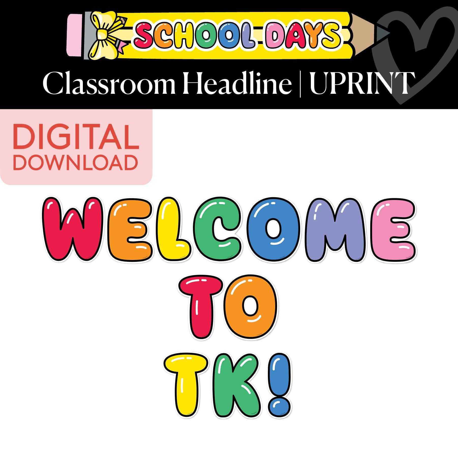 Bring big smiles and bright vibes to your classroom with this Welcome to TK headline! Featuring bold, bubbly letters in a playful rainbow palette, this printable display is perfect for bulletin boards, doors, hallway walls, or anywhere you want to make a statement! It’s an easy way to create a cheerful, inviting space that helps your littlest learners feel excited and welcomed from the very first day!