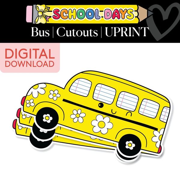 Add a cheerful touch to your classroom with these School Days Printable Bus Cutouts! Featuring a bright yellow school bus with adorable flower designs and playful accents, these cutouts bring a retro vibe to your classroom. Perfect for adding a fun and colorful element to bulletin boards, walls, or any space in need of some extra personality, these bus cutouts help you welcome students in style. Whether you're organizing classroom areas or celebrating the start of the school day, these cutouts will definitely brighten up the space with their charm and joyful energy!