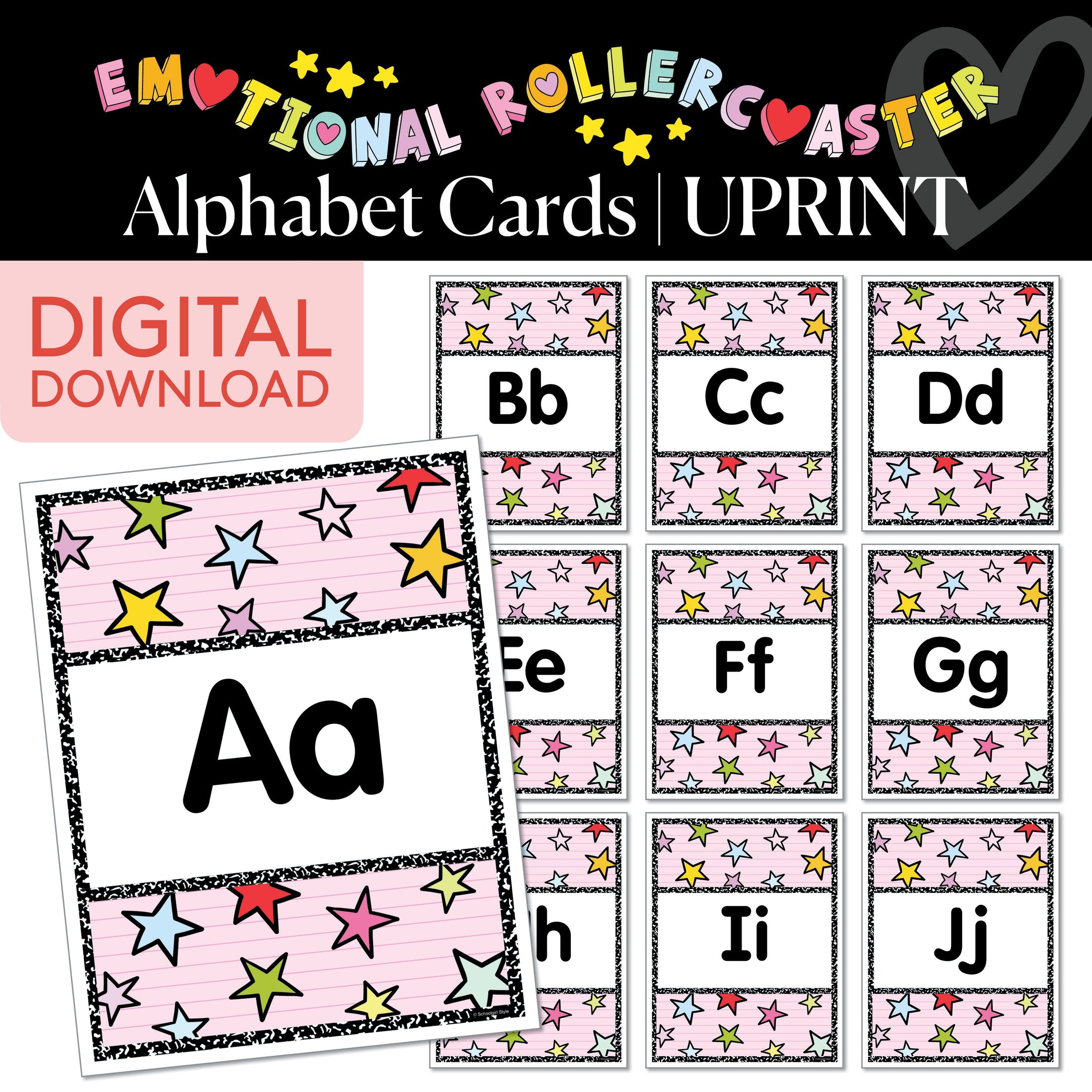 Make learning the alphabet a colorful, fun adventure with the Rainbow Pastel Stars Manuscript Alphabet Cards! These vibrant cards feature bold, manuscript letters on a playful pink background with bright, cheerful stars. Perfect for teaching writing, reinforcing letter recognition, and adding a touch of positivity to your classroom, these cards are both educational and visually engaging. They beautifully complement the Emotional Rollercoaster collection, bringing a burst of color, emotional growth, and fun into your learning space!