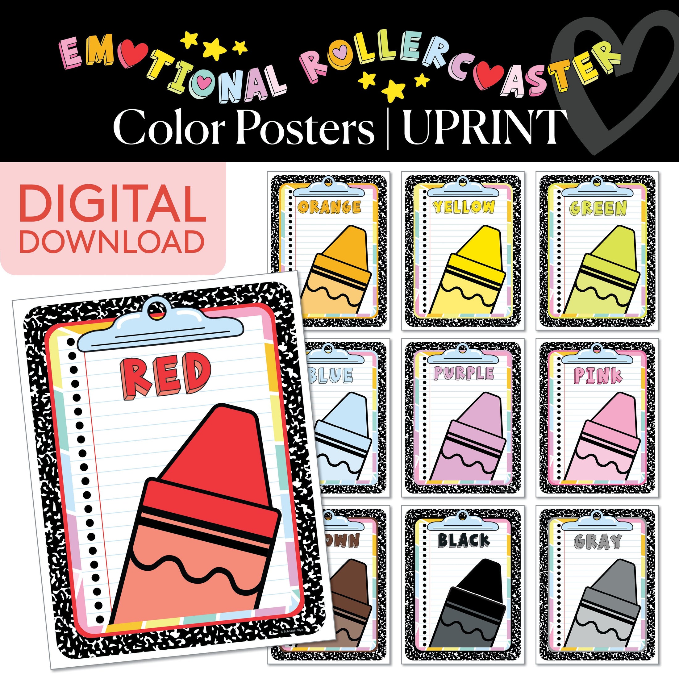 Bring vibrant positivity to your classroom with the Emotional Rollercoaster Printable Color Posters! This set features bold, cheerful color names paired with playful, crayon illustrations, all set against a fun lined paper backdrop. Perfect for helping students learn their colors, these posters also brighten up your space with their rainbow pastel tones and uplifting designs. Ideal for creating a colorful and supportive learning environment, these posters are sure to bring joy and inspiration to your classroom!