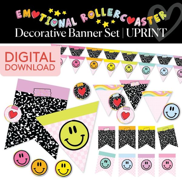 Add a burst of color and joy to your classroom with the Printable Rainbow Pastel Decorative Banner Set from the Emotional Rollercoaster collection! This set features playful, smiley face designs, vibrant pastel colors, and fun shapes like hearts and cheerful patterns. Perfect for decorating bulletin boards, doorways, or any space that needs a lively, welcoming touch, this banner set creates an inviting and positive atmosphere for students!
