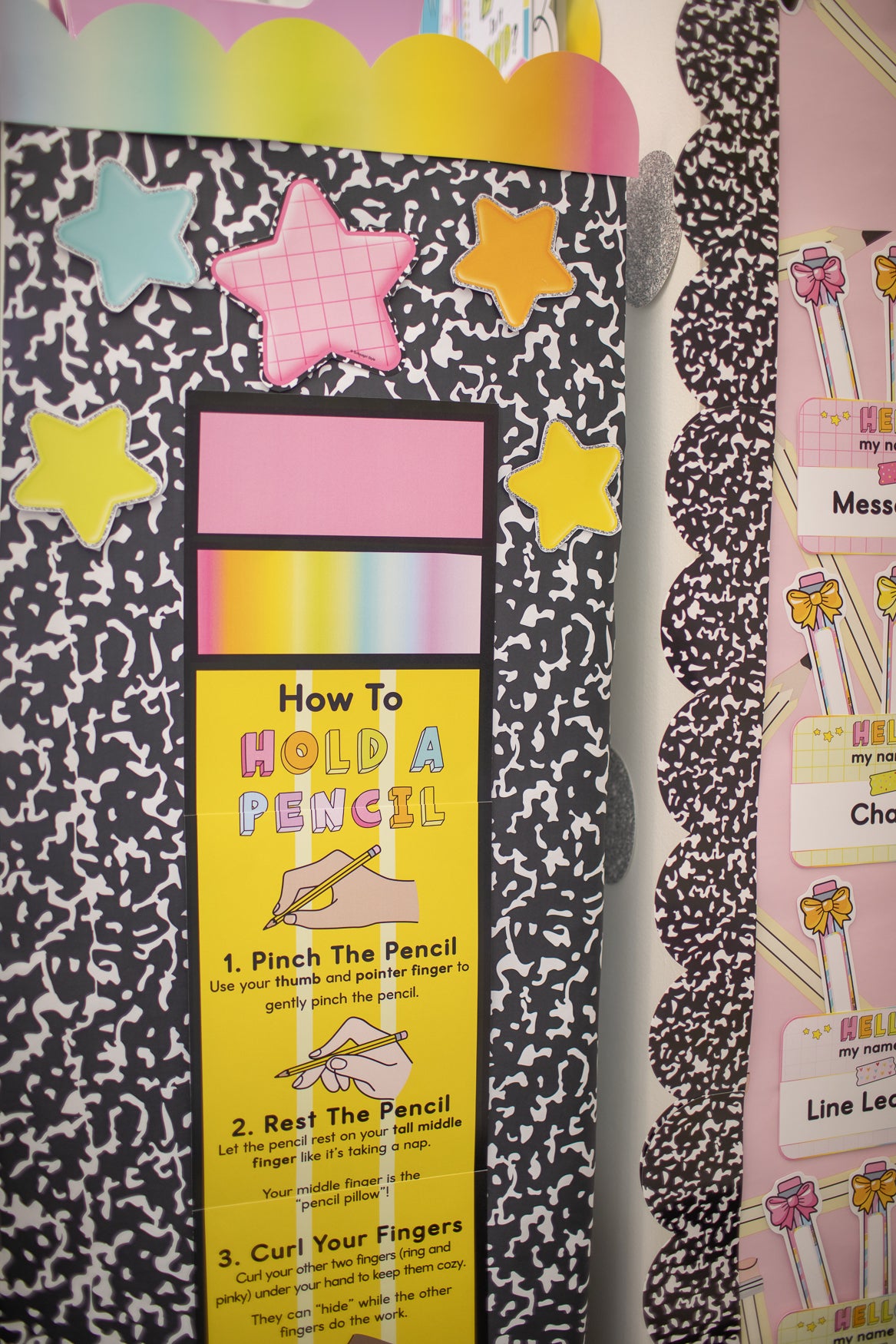Perfect for early learners developing their writing skills, the How to Hold a Pencil Statement Piece is an essential visual learning tool. This fun, rainbow pastel pencil-shaped guide breaks down the steps to holding a pencil correctly, making it easier for students to learn proper grip and posture. With its clear instructions and adorable design, it’s ideal for placement in a writing center or any area where students practice their handwriting. This playful yet informative decor not only helps students with fine motor skills but also adds a touch of charm to your classroom!