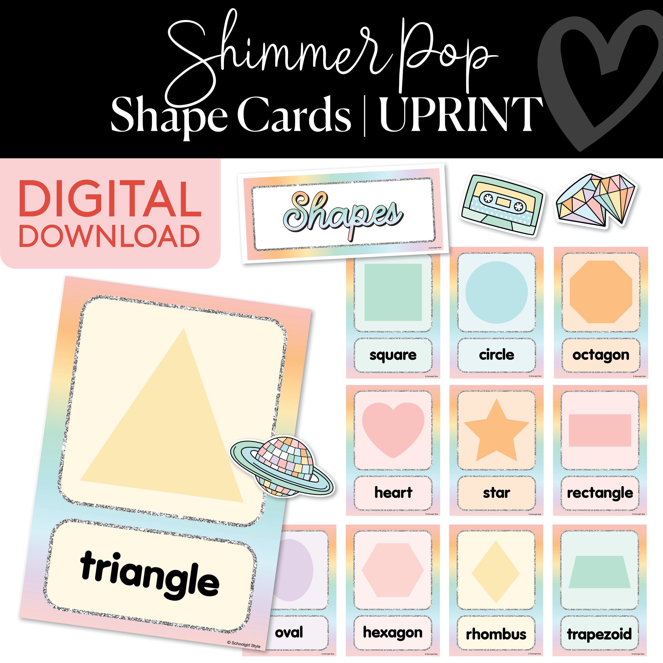 Shape Cards | Shimmer Pop | Printable Classroom Decor | Schoolgirl Style