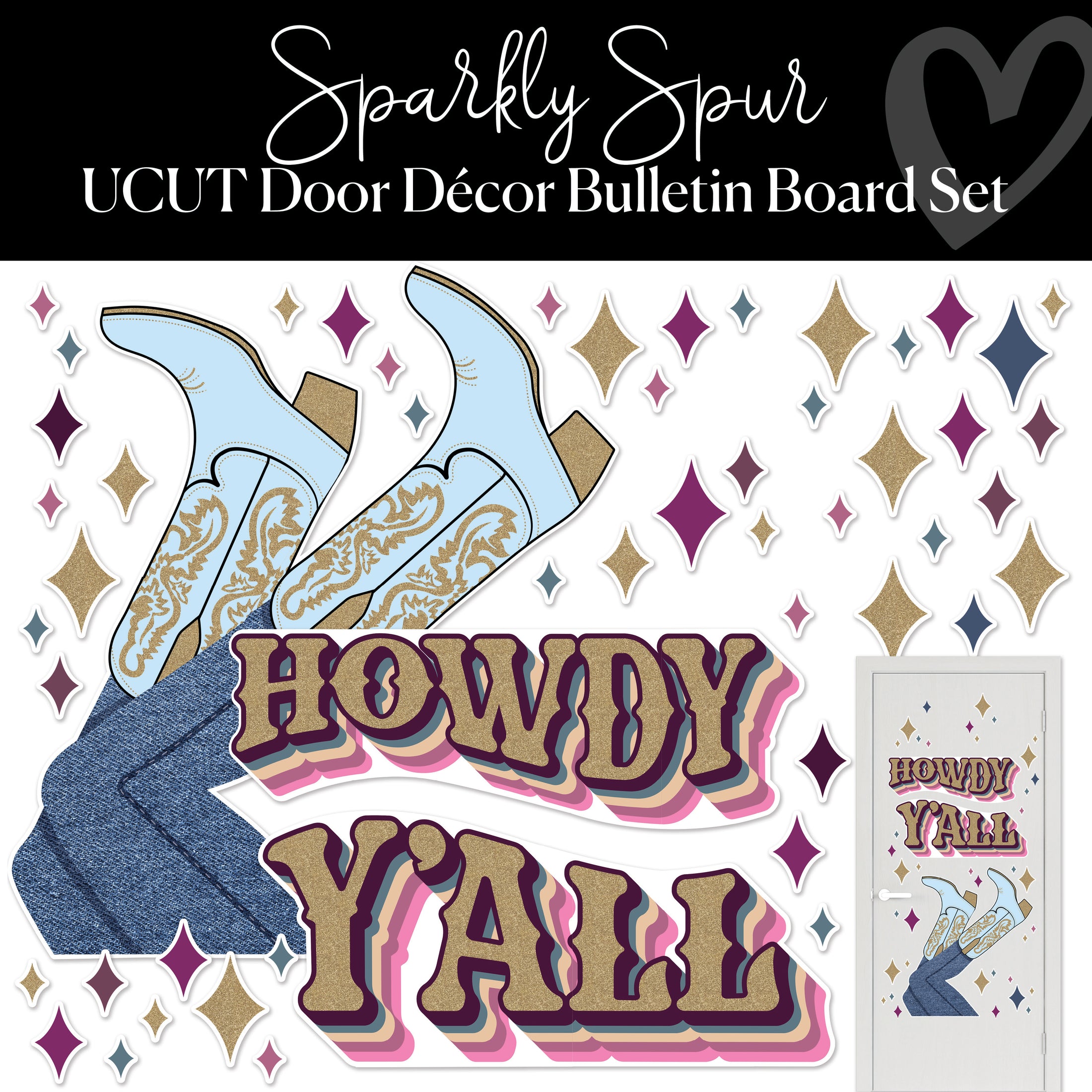 Saddle up for sparkle! The Sparkly Spur Collection blends Western whimsy with disco cowgirl flair—think denim accents, rhinestones, cactus florals, and twinkling disco balls. Every detail brings bold personality and big yeehaw energy to your space! The Sparkly Spur Pre-Printed Classroom Decor Bundle is your one-stop shop for easy decorating—delivered right to your door, no printing required!
