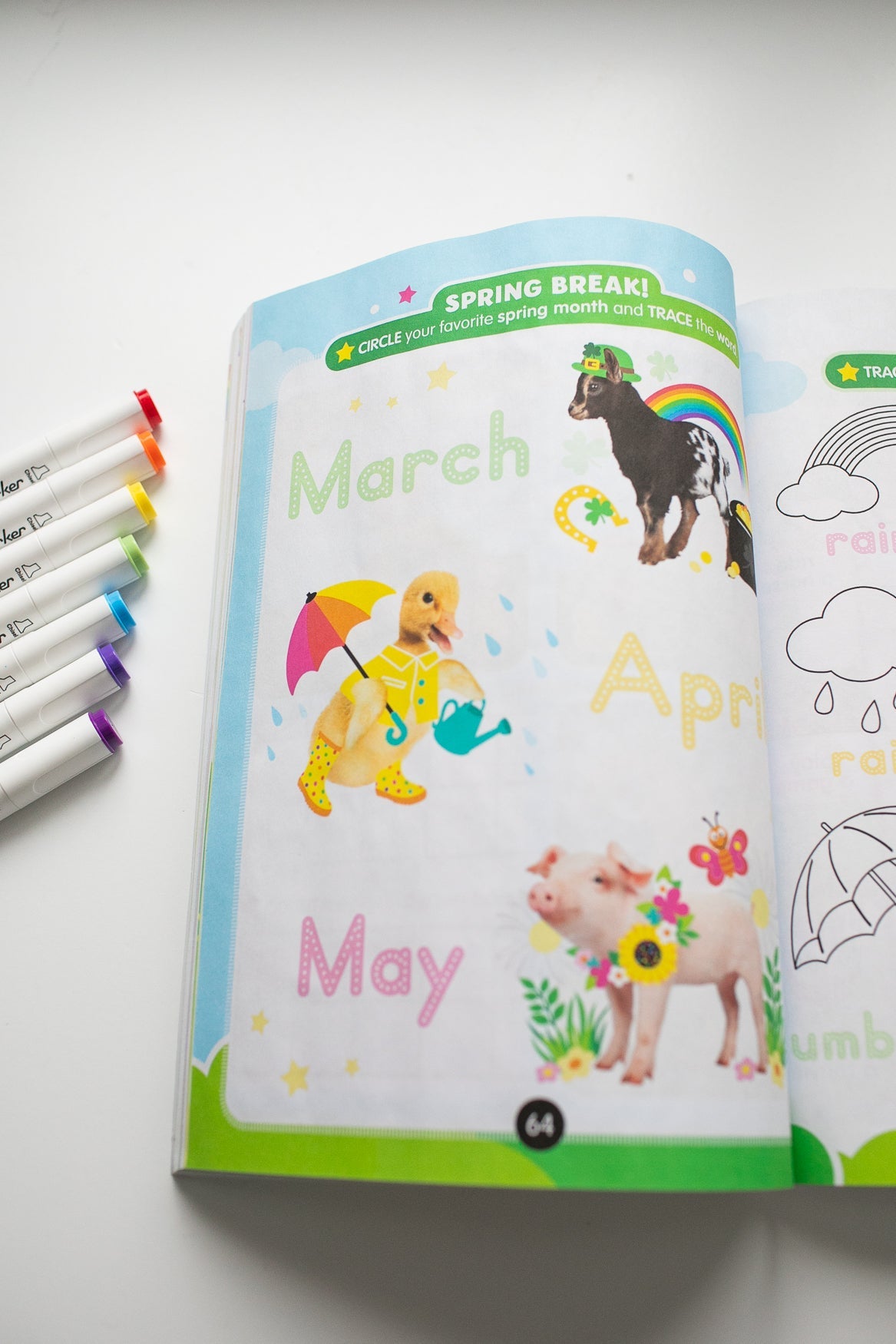 The Spring Activities Workbook includes 180 pages of educational fun. Through engaging activities, your child will explore key concepts in literacy, math, and seasonal science—all while developing confidence and a love for learning.
