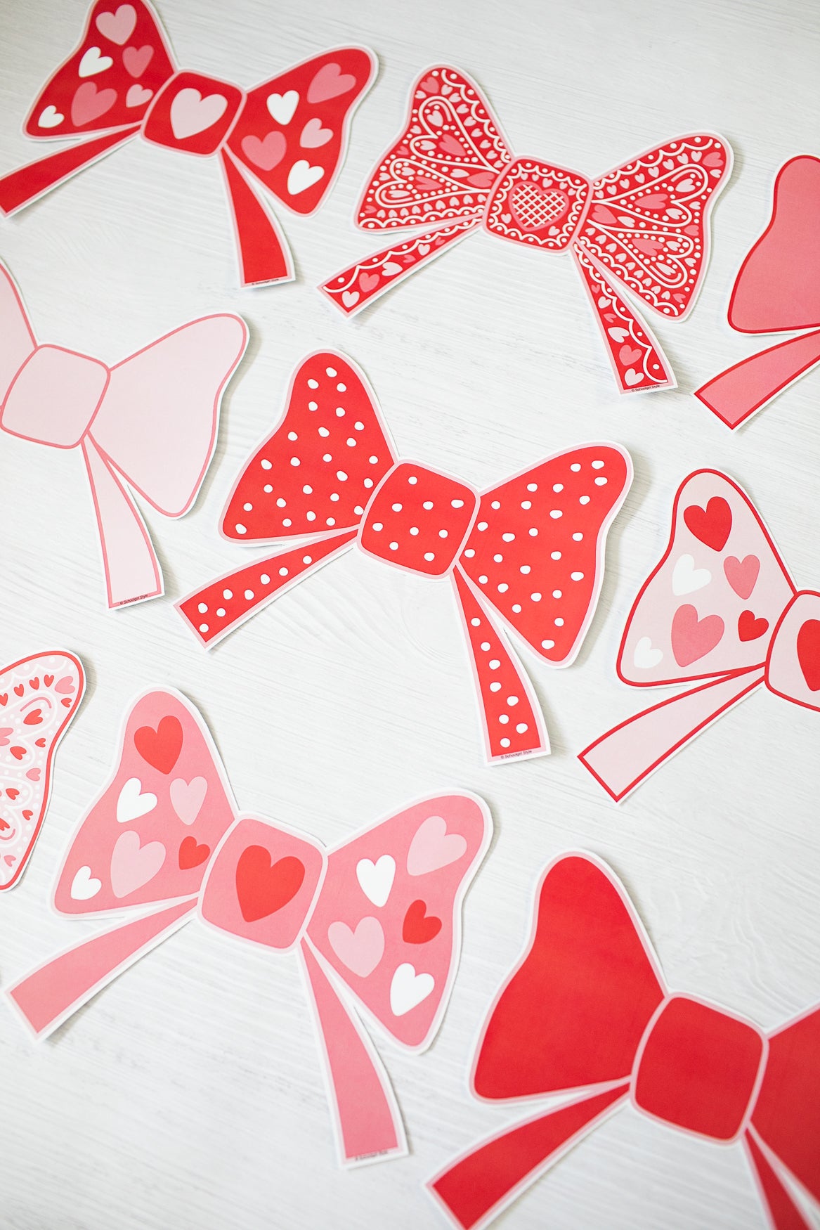 - Cutouts: decorated hearts, hearts with faces, plain hearts, bows and sunglasses